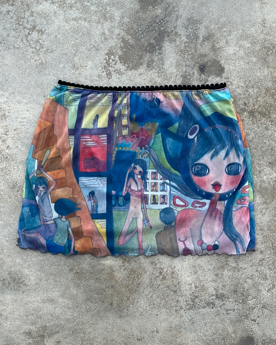 Mini skirt made of mesh, interior lining and elastic waist.